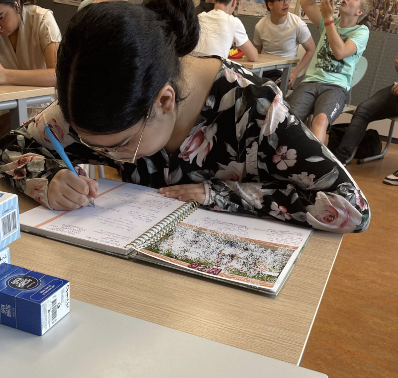 Ik plak mijn klassenfoto op een bladzijde. Leerlingen mogen vervolgens een berichtje schrijven. Zo heb je een leuke herinnering aan je mentorklas.
